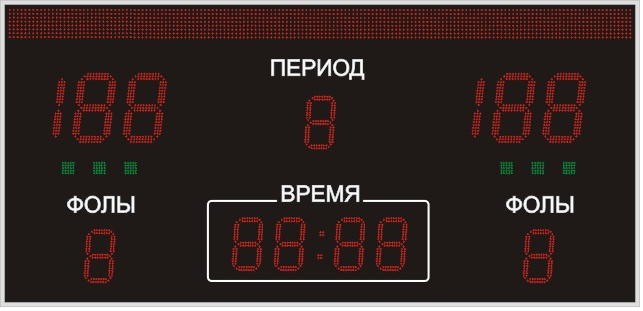 Универсальное табло №16 предназначено для отображения информации при проведении соревнований по игровым видам спорта в закрытых спортивных манежах, а также на открытых спортивных площадках.